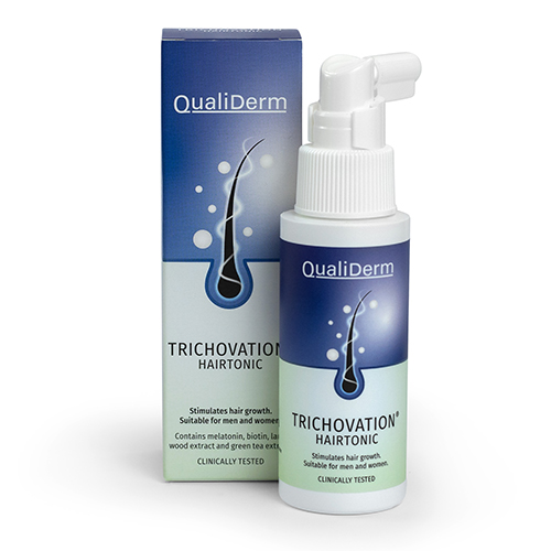 TRICHOVATION® HAIRTONIC ist ein topisches Pflegepräparat für Frauen und Männer zur Stimulation des Haarwachstums. Das Präparat wurde auf Basis von Studien zur Anwendung bei allen Indikationen des Haarausfalls entwickelt, insbesondere für die Androgenetische Alopezie (erblich bedingter Haarverlust), aber auch für den diffusen Haarverlust.